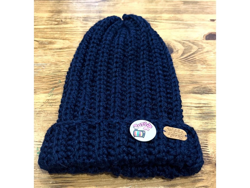 Ručně vyráběná zimní teplá čepice z alpaky s plackou/odznáčkem ZuzuTV.